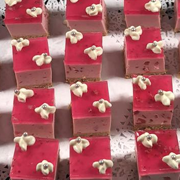 新鮮士多啤梨粒、士多啤梨慕絲、忌廉、牛油餅乾碎底