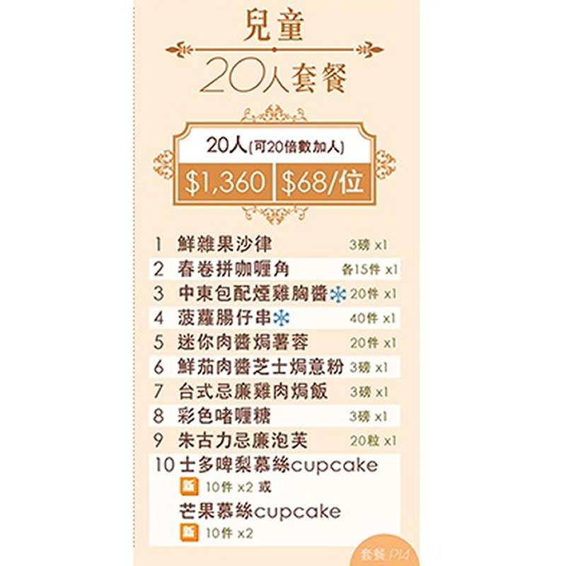 兒童20人套餐
