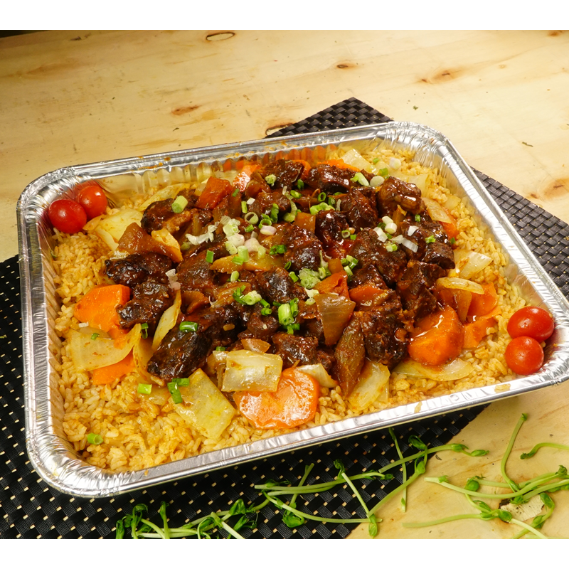 紅酒牛腩、西芹、洋蔥、甘筍、馬蘇里拉芝士碎、台式撈飯