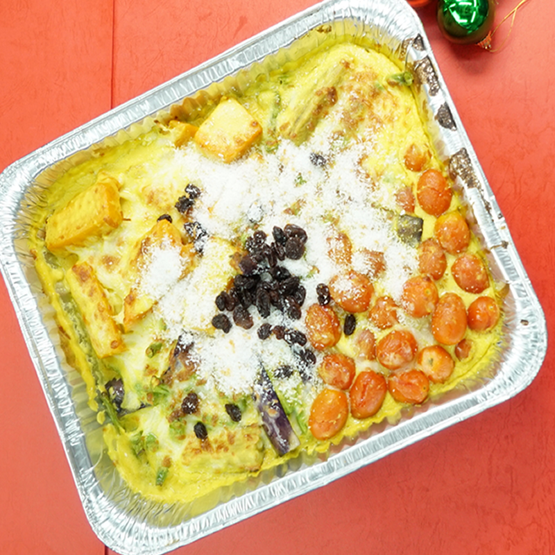 車厘茄、四季豆、茄子、南瓜、馬蘇里拉芝士碎、葡汁、椰絲