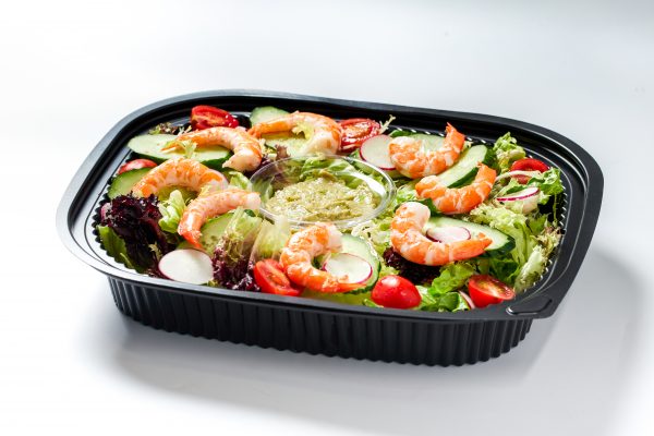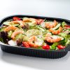 大蝦、刺青瓜片、車厘茄、櫻桃蘿蔔片、藍莓、雜菜沙律